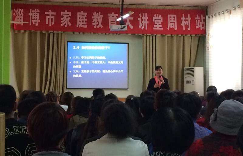 4月25日下午,淄博市家庭教育大讲堂公益讲座走进周村区长安幼儿园,特邀市妇联公益讲师朱云老师主讲《让孩子做最好的自己》。朱云老师通过现实案例和自身体会深入浅出地讲解如何培养孩子优秀的品格,讲座贴近实际、通俗易懂。本次讲座共计150余名家长参加,家长们听的认真,现场不时听到赞同声和阵阵掌声,取得了良好效果。