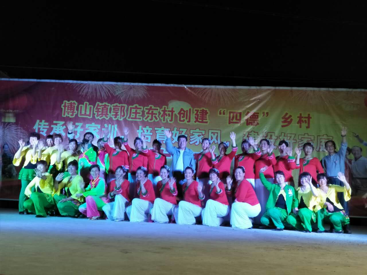 博山镇郭庄东村为践行党的群众路线,成立了业余文化艺术团,每逢节假日便走进各村进行文艺演出,把党的温暖送到广大老百姓的心里。近年来,该村以各种形式的文化宣传活动,促进了全村各项社会事业的健康发展。