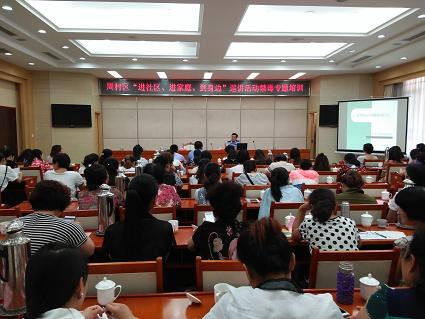 为深入贯彻落实山东省加强禁毒工作系列决策部署和市区禁毒办三年禁毒人民战争动员部署会议精神,进一步提高广大妇女和家庭成员参与禁毒斗争的意识和能力,确保各项重要政策措施落到实处,6月15日下午2:00,在区会务中心第二会议室举办了“进社区、进家庭、到身边”禁毒专题讲座,邀请山东省鲁中强制隔离戒毒的吴广教导员为大家做了精彩的授课。各镇、街道妇联主席,城区妇委会主任、企业女工委主任,各街道辖区村(社区)妇联主席共110余人参加培训。