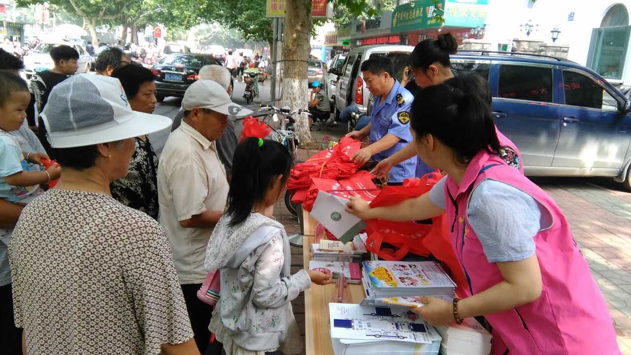7月1日,沂源县妇联与县食品药品监管局联合开展了上街宣传活动,宣传内容涉及食品药品安全、禁毒、反家庭暴力法、少年儿童自我保护、做合格家长等方面,现场发放宣传册、明白纸和环保购物袋5000多份,受到群众欢迎。