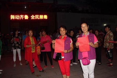 8月19日晚,周村区妇联按照全省的统一部署,联合区禁毒办在盛世国际广场举办了全区“舞动齐鲁全民禁毒”宣传活动。区妇联组织了20余名巾帼维权志愿者参加了宣传活动,为群众现场表演了《没有共产党就没有新中国》小合唱,并向广场上参加健身活动的200余位市民发放了《珍爱生命 远离毒品》宣传手册、宣传彩页、举报奖励政策等宣传资料,详细讲解和普及禁毒、防毒知识,号召全区广大市民从自身做起,从家庭做起,认真学习有关法律法规和禁毒知识,努力提高禁毒防毒意识,以实际行动为平安周村、幸福周村建设贡献力量。活动现场,共向市民发放各类禁毒宣传资料600余份,受到市民的欢迎。