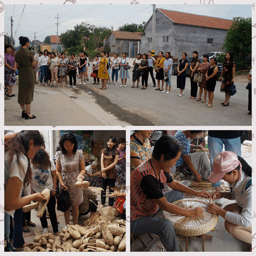 随后考察团来到山东省巾帼居家创业示范基地――高青县高城镇姚套村珊迪草柳编厂考察草编项目。考察团被基地上大片晾晒的蒲草和妇女们欢声笑语的蒲编火爆场面所感染,更是对几个七八十岁老年妇女精湛的编织技艺赞叹不已,纷纷与有关负责人及从业妇女进行了深入交谈,了解姚套草编的历史渊源、工艺手法、花色品种、销售渠道、辐射带动以及手工草编的劳动强度、从业时间、创收致富等情况,对姚套村草编项目的合作社运作模式给予高度评价。