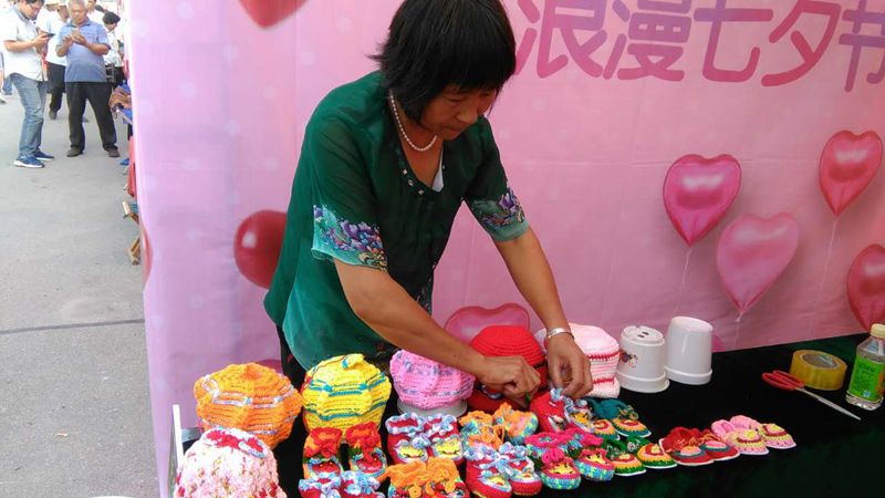 在“七夕乞巧”集市上居家毛线钩织产品也备受青睐。这位阿姨说平日里的她钩织的这些小玩意都会被人订购,仅在七夕这天就收入了四百多元,本来做这些为了打发时间,没想到竟成了一项收入来源。