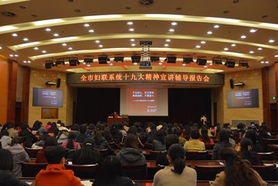 报告会上,全面启动全市十九大精神巾帼宣讲活动。市妇联党组成员将率先根据安排走进挂包区县,采取报告会、研讨会、座谈交流等多种形式,深入基层、深入妇女群众中,以亲身经历、切身感受,进行现身宣讲。会议要求全市各级妇联组织要组建三八红旗手、巾帼建功标兵、“五好家庭”、“最美家庭”等优秀典型、专家学者等组成宣讲队伍,深入基层广泛宣传,努力把党的十九大精神的丰富内涵和思想精髓讲清楚、讲明白,让基层妇女群众听得懂、能领会、可落实。要充分利用妇联网络及新媒体平台、姐妹微信群开展宣讲活动,通过在线直播、即时推送、线上线下互动等方式为十九大精神宣讲活动发声造势,激发广大妇女学习宣传贯彻十九大的热情,凝聚起建设经济文化强市的强大巾帼力量。