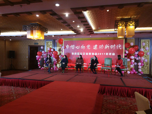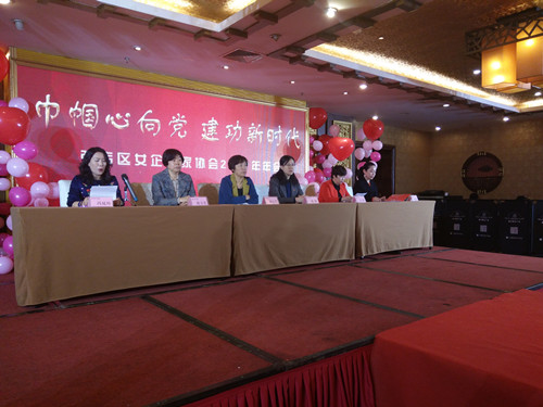 1月18日下午,张店区女企业家协会召开主题为“巾帼心向党 建功新时代”的2017年年会。市妇联副主席崔云芝,市妇联发展部部长张玉芝,区政府副区长王旭,区政协副主席徐俊杰,区妇联主席苑坤,区女企业家协会会长冯延玲及有关区直部门负责同志出席了会议,协会80余名会员参加了会议。