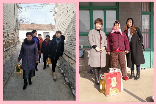 高青县女企业家协会的爱心女企业家们根据贫困妇女的微心愿,精心准备了米、面、油、火腿肠、羽绒服等物品,来到贫困妇女家中,为她们送去丰富的节日食品,穿上温暖漂亮的羽绒服,和她们聊天、拉家常,鼓励她们勇敢面对眼前的困难,积极配合党和政府的扶贫政策,争取早日脱贫。本次活动共为全县15名贫困妇女实现了微心愿。