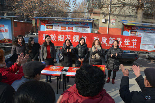 2月1日,市妇联、区妇联在张店沁园社区开展“禁放烟花爆竹欢度新春佳节”活动,街道、社区负责人和社区群众约80人参加了活动。