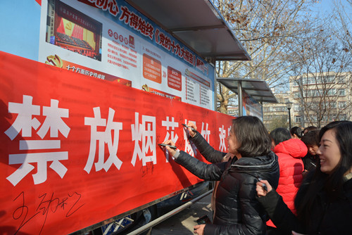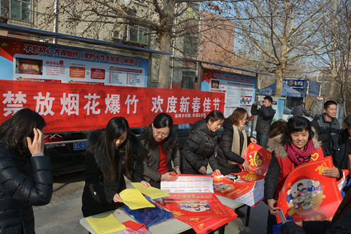 春节将至,活动现场气氛热烈。社区志愿者宣读并发放了《区妇联禁放烟花爆竹倡议书》,大家纷纷在横幅上签名宣誓。领导和同志们为群众们送上妇联印制的年画、福字和购物袋。工作人员现场进行妇女儿童权益、健康咨询并发放宣传读本。