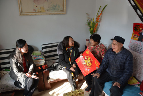 市妇联各部门负责人、区妇联领导来到困难党员邱清德和郭万新的家中,嘘寒问暖并送上大米、鸡蛋、花生油、年画等过节物资。