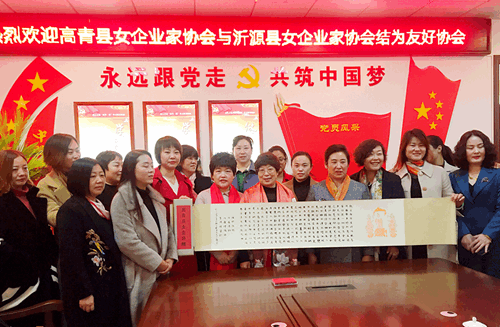 11月20日,高青县妇联、县女企业家协会一行13人赴沂源参观学习巾帼创业就业、美在家庭建设、两新组织党建等工作。活动中,高青县女企业家协会会长崔霞、沂源县女企业家协会会长魏继花分别介绍了两地女企协的发展及工作开展情况,代表协会共同签署了友好协会合作协议书,互赠创业精神匾额,表达了协会之间相互促进、相互激励、共同发展的美好愿望。