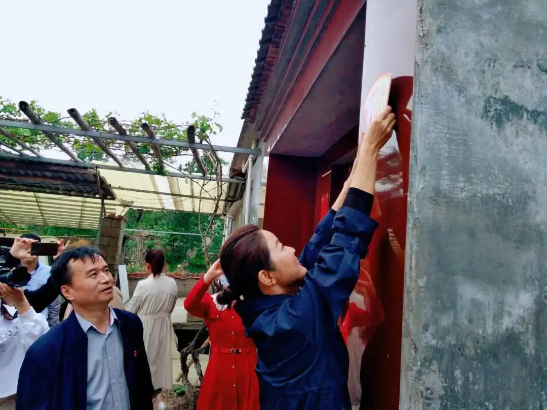 随后,各位领导到张庄村“美在家庭”标兵户代表家中现场授牌。