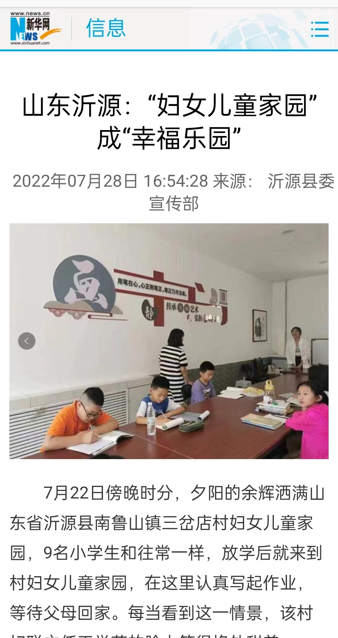 7月22日傍晚时分,夕阳的余辉洒满沂源县南鲁山镇三岔店村妇女儿童家园,陈文琦、韩长友等9名小学生和往常一样,放学后就来到村妇女儿童家园,在这里正在认真写作业,等待父母回家。每当看到这一情景,村妇联主席王学芹的脸上笑得格外甜美。