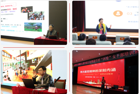 此次培训班邀请10位专家进行授课,内容主要涵盖习近平总书记“七一”重要讲话精神、全域美学与乡村文旅融合发展创新、全域美学的总体规划与美丽乡村建设、数字农业农村建设、读懂孩子,理解教育——做新时代的智慧父母、互联网环境下妇联新闻宣传的挑战与对策等,内容丰富,针对性强,做到了政治、经济、文化领域的“三结合”,课课有新意,堂堂皆精彩。