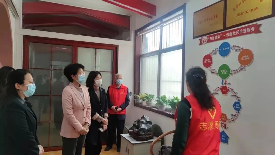 在周村区鸿雁社会组织服务中心,成文主席与省妇联执委、周村区鸿雁社会组织服务中心主任张鸿雁深入交流,对张鸿雁执委落实“党建带妇建”,开展红色家风、巾帼志愿服务、阅读推广等工作项目,在妇女思想政治引领、疫情防控、基层社会治理等方面取得的显著成绩,给予充分肯定。成文主席指出,各级妇联执委要强化角色意识,亮明执委身份,更好的引领联系服务广大妇女群众;要进一步提高履职能力,梳理工作项目,理清路线图,明确时间表,有效落实职责,深度参与经济社会发展。