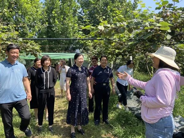 在博山区源泉镇猕猴桃基地,王旭副主席一行对猕猴桃的种植、分装以及线上销售进行了解,对于猕猴桃丰收期间可能出现的问题进行了指导。同时实地查看了解“巾帼好品 云上齐销”助力乡村振兴产销对接会暨博山区第十届猕猴桃文化旅游采摘节活动筹备情况。