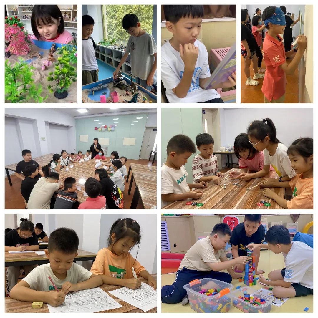 早上7:50报到,“和被窝难舍难分、和电脑藕断丝连、和电视依依不舍、和手机形影不离”,这些让家长头疼的心事烟消云散,看到的是心理志愿者窦伟老师、白雪老师引领孩子们进行“每日觉察”“正念冥想”;而多米诺骨牌、团体心理沙游在静心、收心基础上提升了孩子们专心、耐心的意志力。