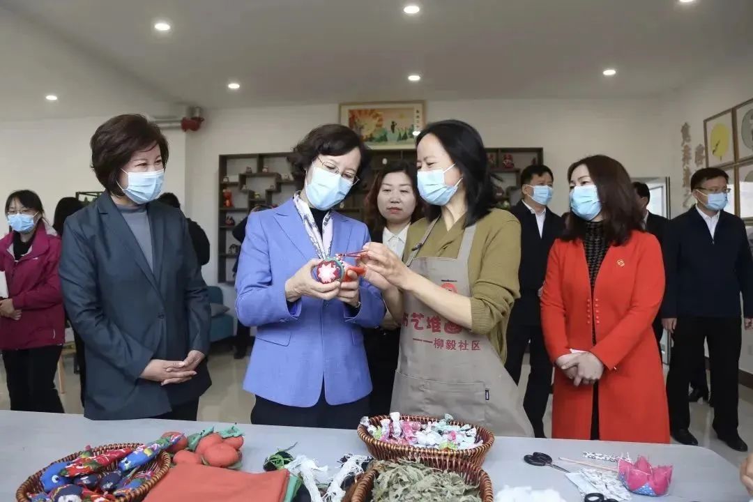 在张店区体育场街道柳毅社区,吴海鹰听取了社区通过平台化、项目化、浸润式方式,创新开展“二十大精神·二十人讲”等宣传教育活动的情况。吴海鹰饶有兴致的观看了话剧《绣红旗》、老党员王秀英自编自演的快板《宣传二十大 再绘新蓝图》,指出,要创新宣讲的方式,用群众听得懂的语言、喜闻乐见的方式讲好红色故事,讲好党的故事,以饱满的热情宣传党的二十大精神。在女性社会组织服务站,吴海鹰听取了布艺堆画传统文化服务项目的介绍,对通过传播非物质文化学习,帮助广大居民了解中国传统文化,同时带动社区妇女的就业创业的做法给予充分肯定。