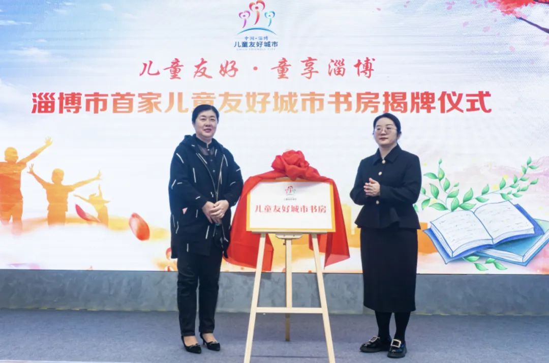 市妇联党组成员、副主席王旭,桓台县副县长王帝为淄博市首家儿童友好城市书房揭牌。