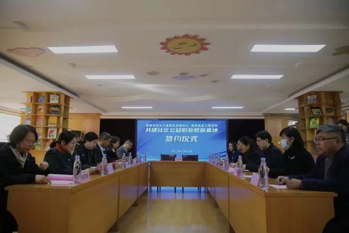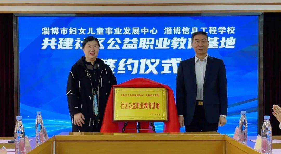 为深入学习贯彻党的二十大精神,促进职业教育走进社区、融入生活、服务社会,11月17日,由淄博市妇儿中心、淄博信息工程学校共同建设的社区公益职业教育基地正式揭牌成立。会上,淄博市妇联党组成员、副主席王旭,张店区教育工委常务副书记,区教体局党组书记、局长孟凡伟为社区公益职业教育基地揭牌。淄博市妇联党组成员、市妇儿中心主任张巍与淄博信息工程学校党总支书记、校长张林丽签订合作意向书。会后,与会人员参观了社区公益职业教育基地。