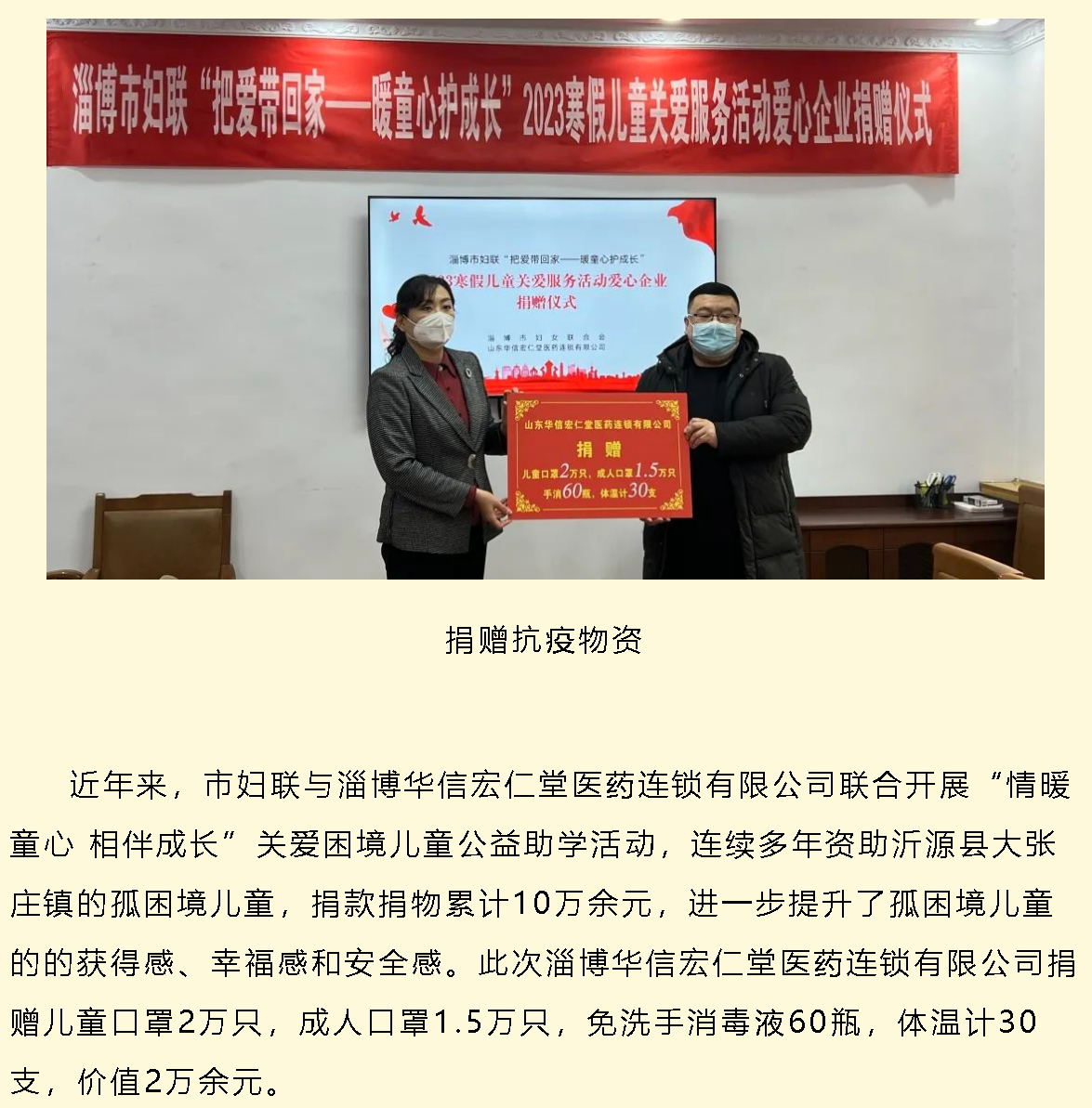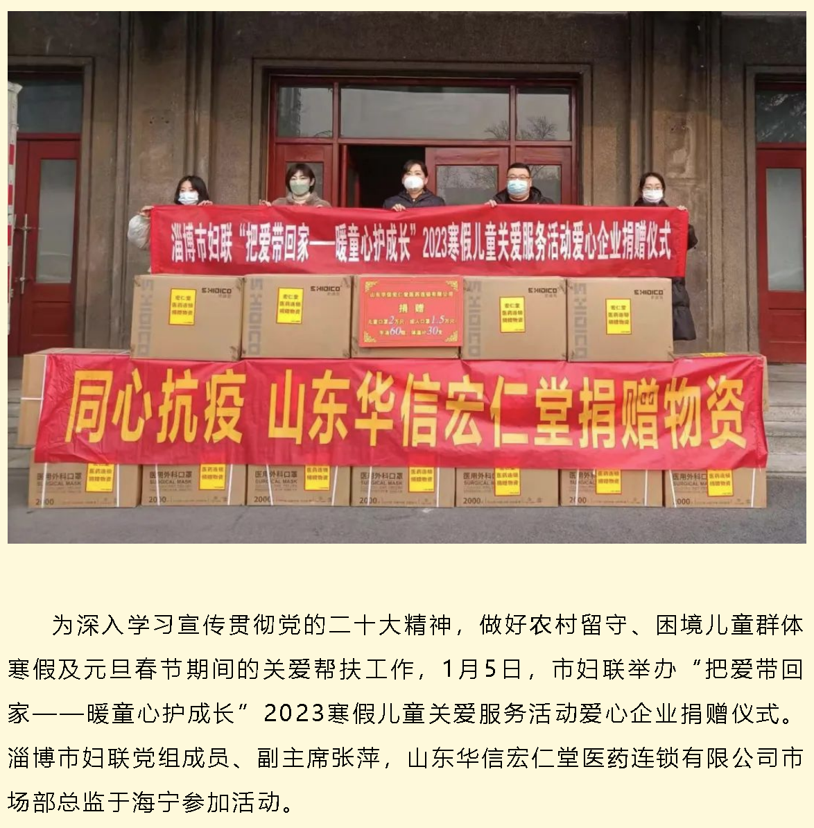 淄博市妇联举办“把爱带回家——暖童心护成长”2023寒假儿童关爱服务活动爱心企业捐赠仪式