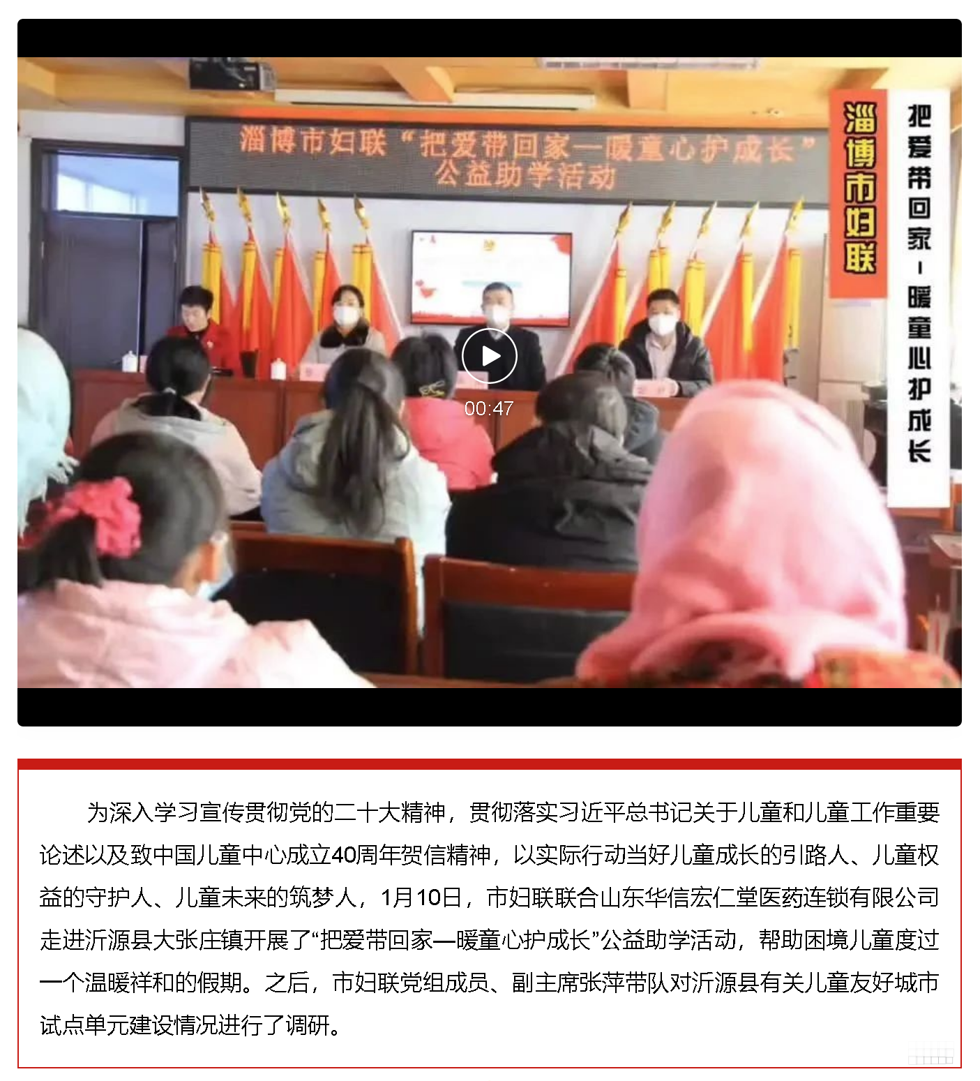 儿童友好 | 聚爱守护 与爱“童”行,淄博市妇联“把爱带回家—暖童心护成长”公益助学活动走进沂源县
