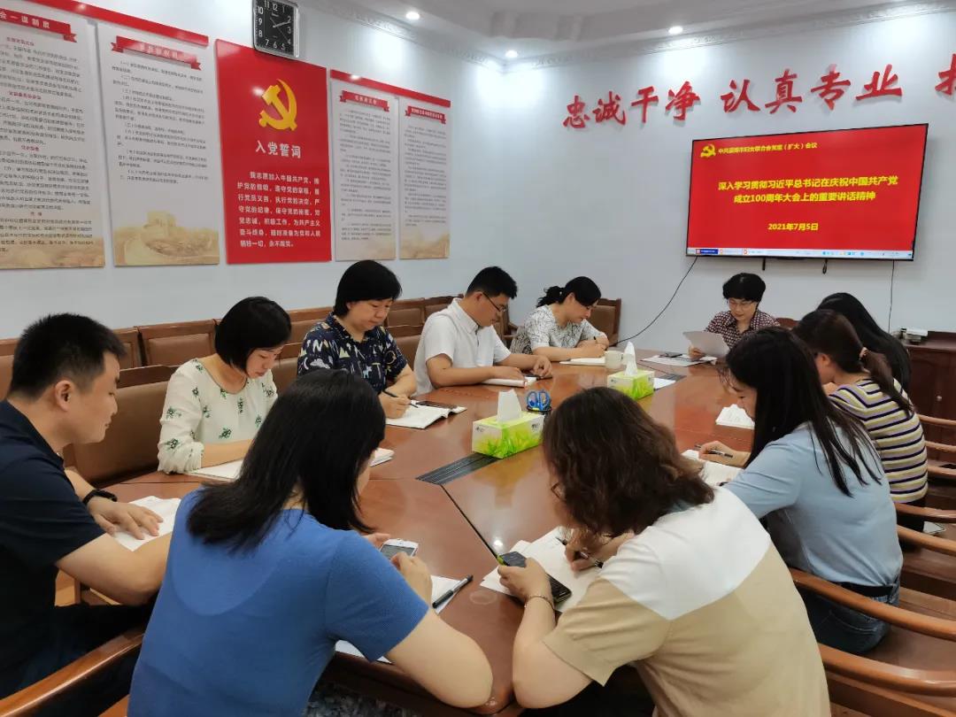 会上,集体学习了习近平总书记在庆祝中国共产党成立100周年大会上的重要讲话原文。在研讨交流中,大家纷纷表示,要认真学习贯彻落实讲话精神,在各自岗位上践行初心、担当使命,不断把为崇高理想奋斗的实践推向前进。