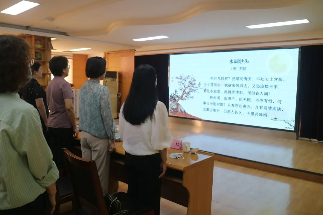 活动第二篇章在经典诗词《水调歌头·明月几时有》中拉开了序幕,大家轮流上场朗诵古今经典诗歌,一首首与明月、思乡、家国情怀有关的名篇佳作,通过大家声情并茂的诵读,抒发了期盼祖国富强、家家团圆的美好心愿。